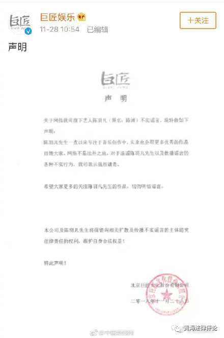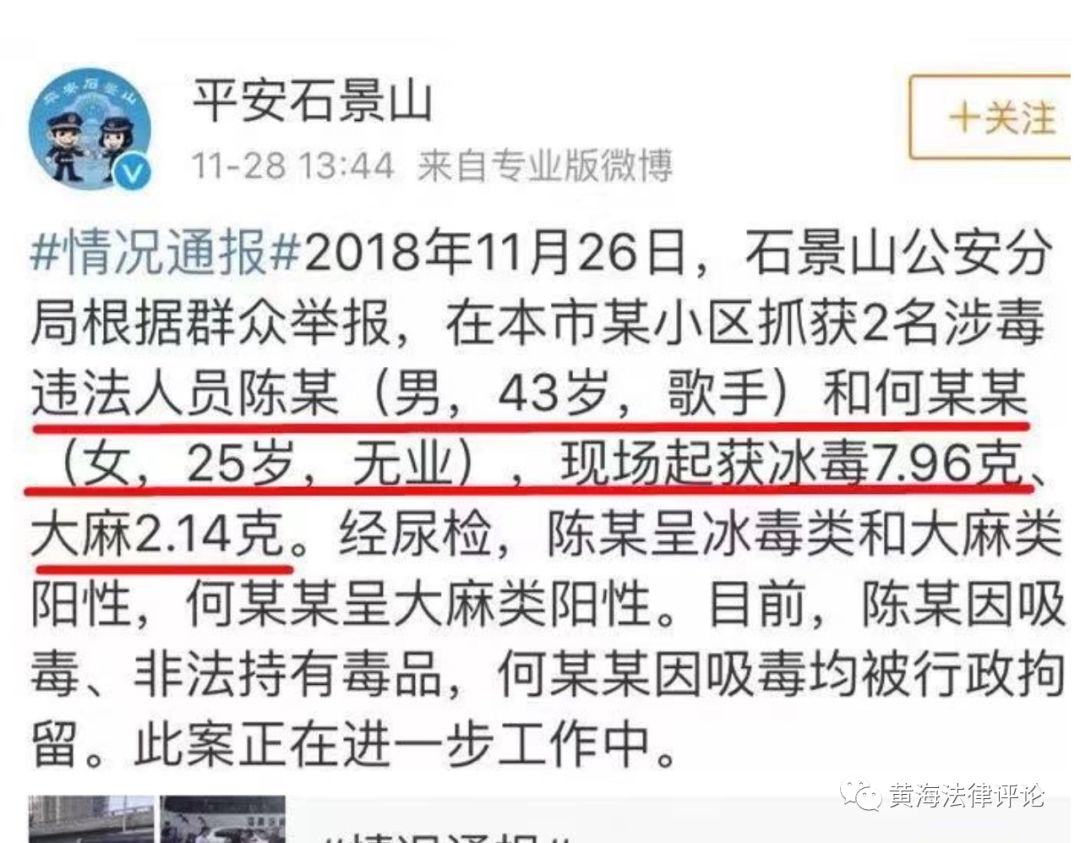 但是,任何涉毒违法行为的“指控”或“谣言”,对于一个公众艺人的社会形象来说,毫无疑问是大事,经纪公司想必会第一时间和经纪人或本人联系、确认,才会发声明,虽然可能发文时已联系不上陈某本人,但毕竟公安机是11月26日就抓获了陈某及同居女友,按照一般生活常理和逻辑,无论如何,经纪公司称其在11月28日发辟谣声明时仍然不知道、不知情,只是看到网传消息后,第一时间单纯地、习惯性地去否认,才造成这么尴尬的误会,不知道你们信不信,反正我是不信的。